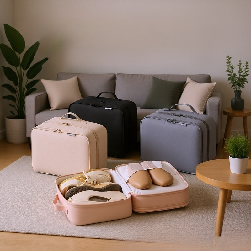 旅行中の靴収納もこれ一つでOK!コンパクトに折りたためて、3層構造で整理もラクラク!